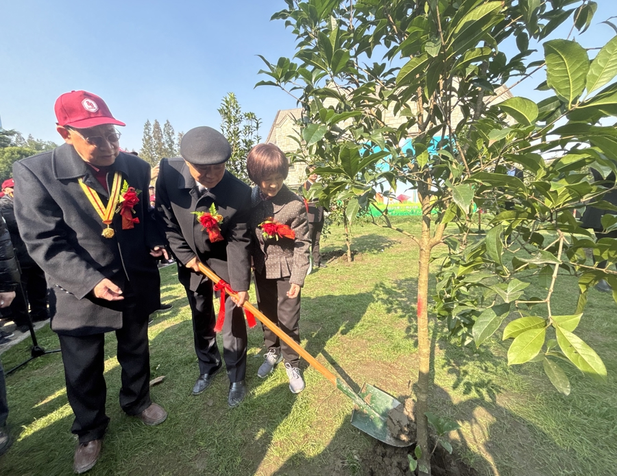 今天的植树活动,共栽种富有品格高洁、寓意团圆思念的桂花树两百多株。更有意义的是,所栽种的部分树木由新四军老战士、参加上海解放战役的开国将军和为上海各项建设事业做出贡献的人士定名挂牌,由他们的后代认养。
